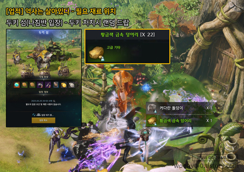 (3번 황금색 금속 덩어리가 랜덤 드랍인 줄 알고 상시섬에서 두키를 오래 잡았는데 안나와서 시간손해 봤슴돠...
