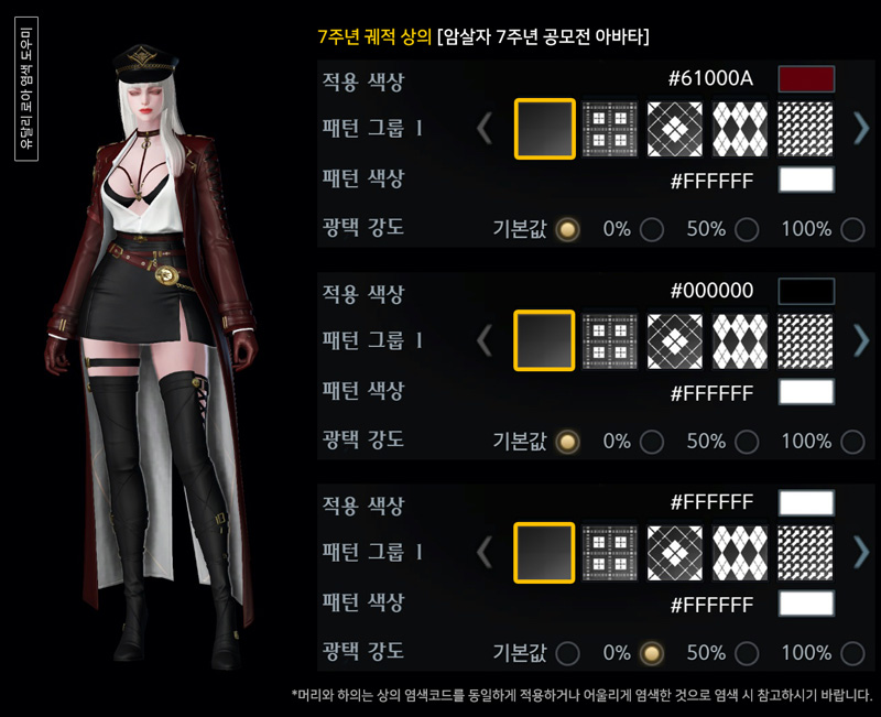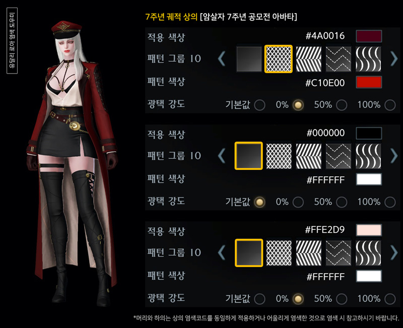 7주년 암살자 궤적 아바타 염색코드 1탄