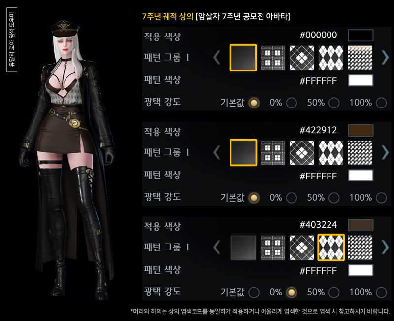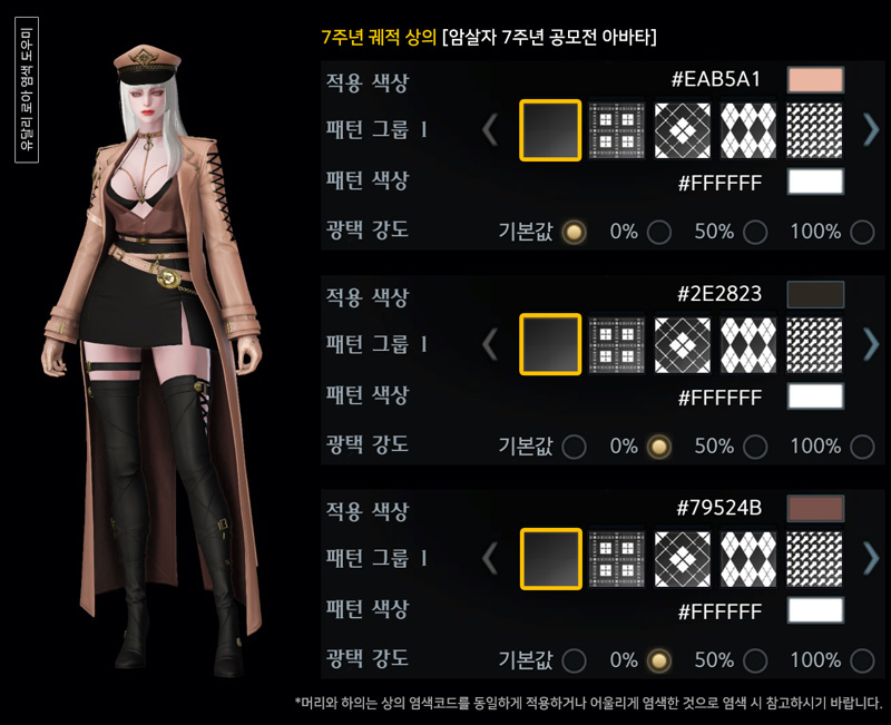7주년 암살자 궤적 아바타 염색코드 2탄
