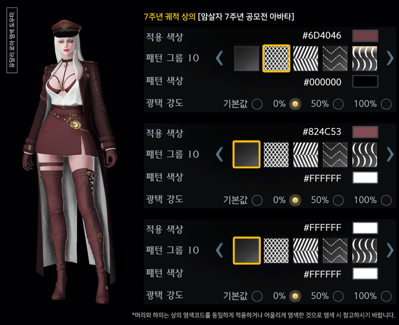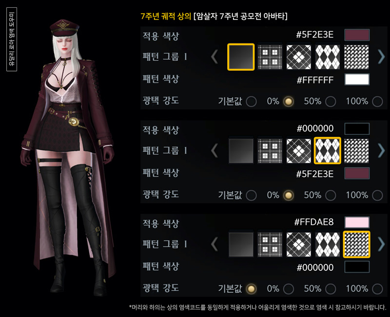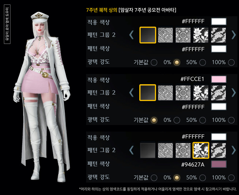 7주년 암살자 궤적 아바타 염색코드 4탄