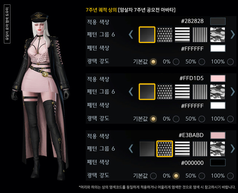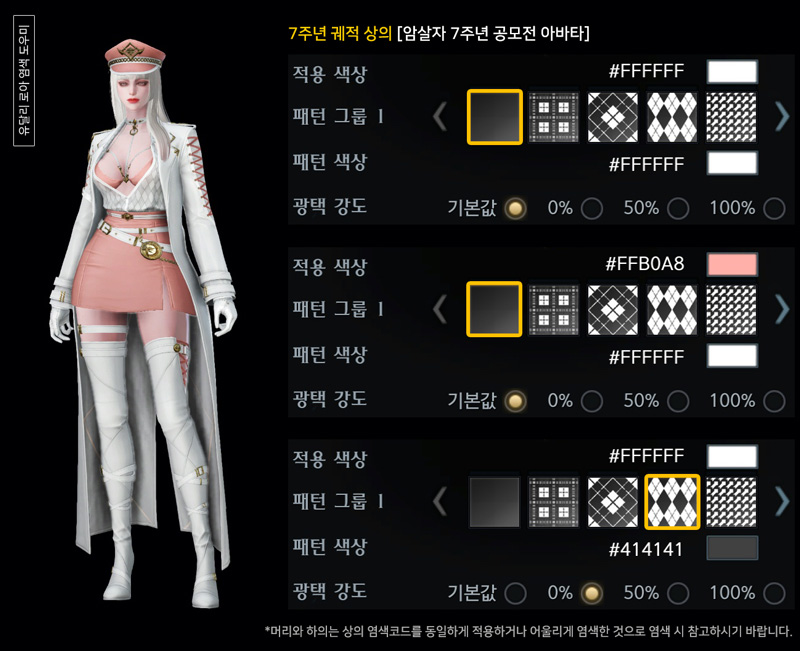 오늘은 암살자 7주년 궤적 아바타 염색코드 마지막으로 4탄입니다.