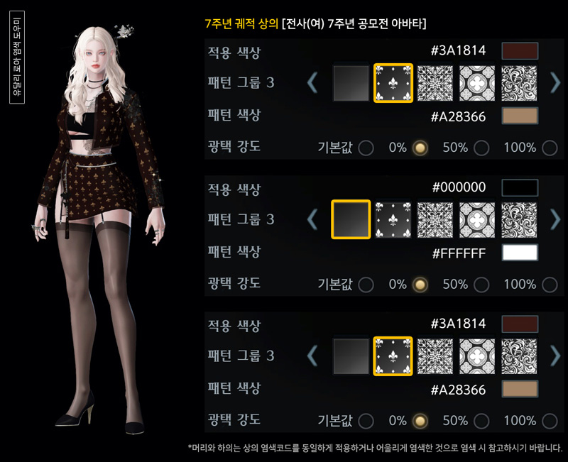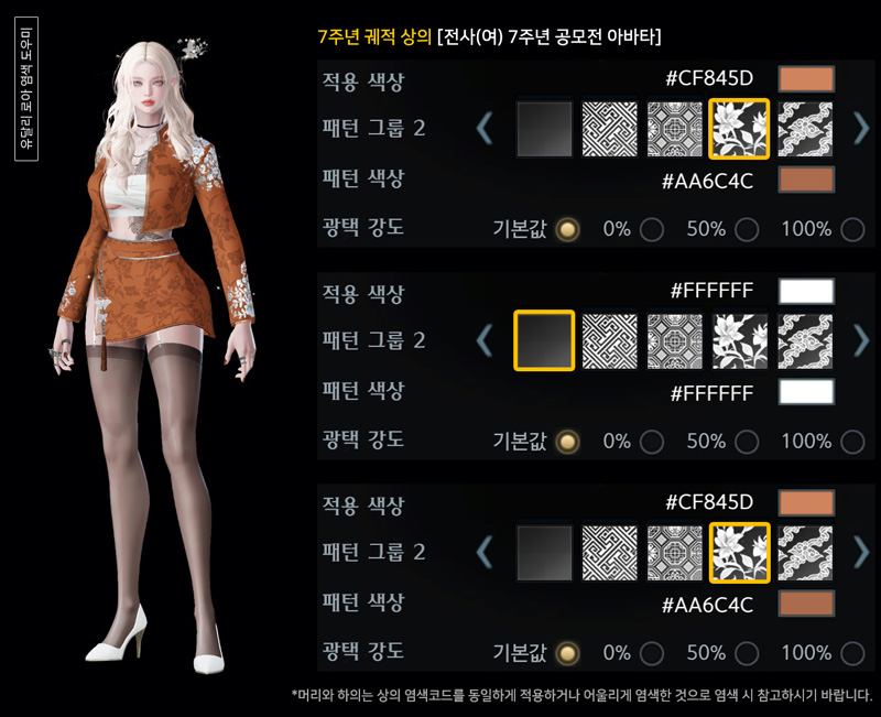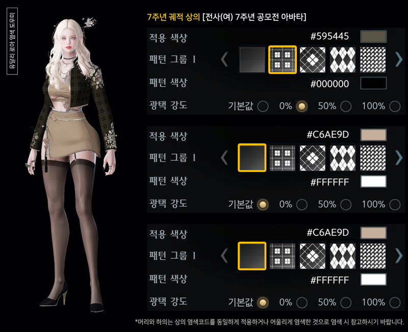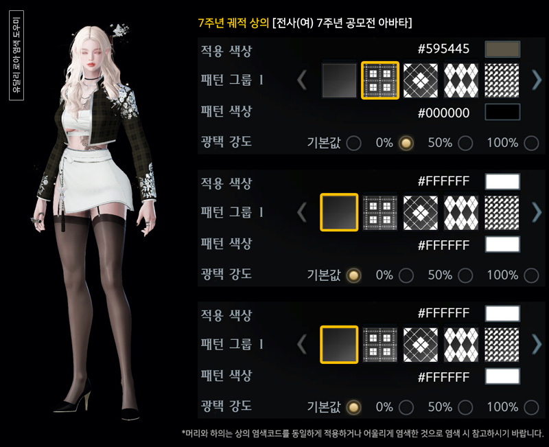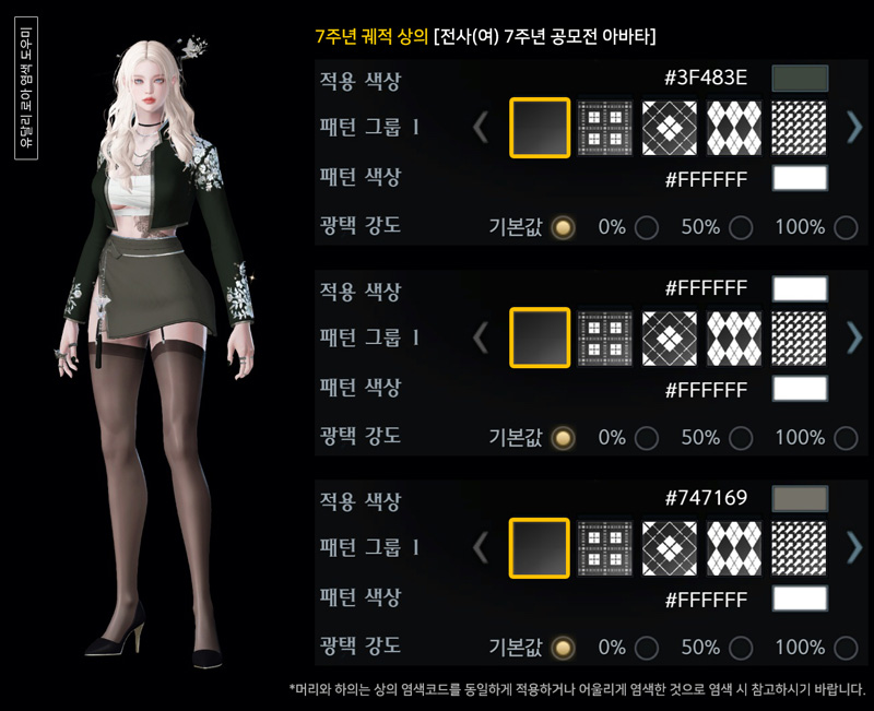 오늘은 여자 전사(슬레이어, 발키리) 7주년 궤적 아바타 염색코드 4탄입니다.
