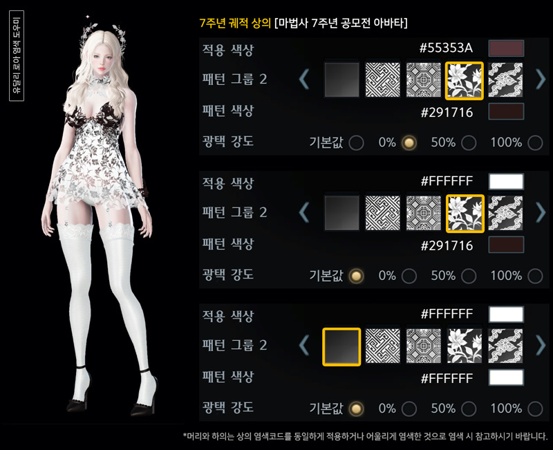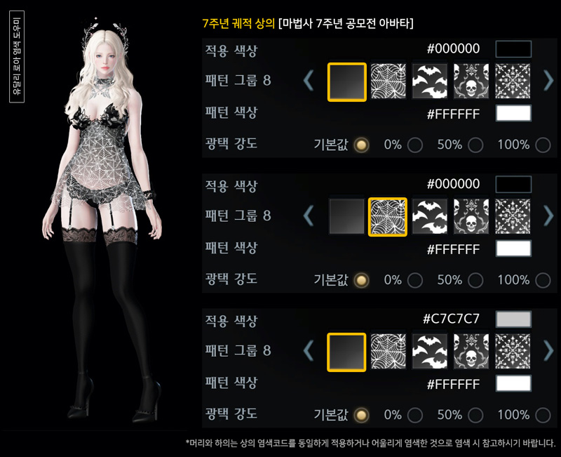 7주년 실린 궤적 아바타 염색코드 1탄