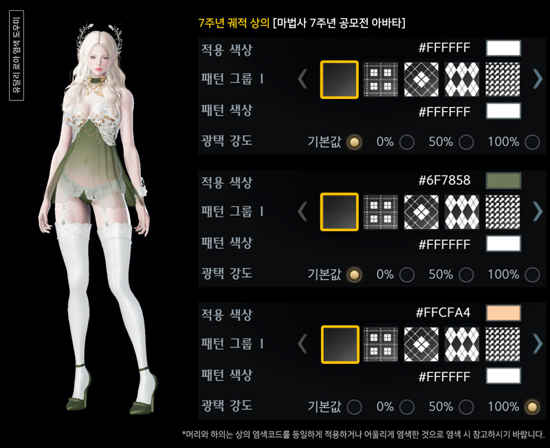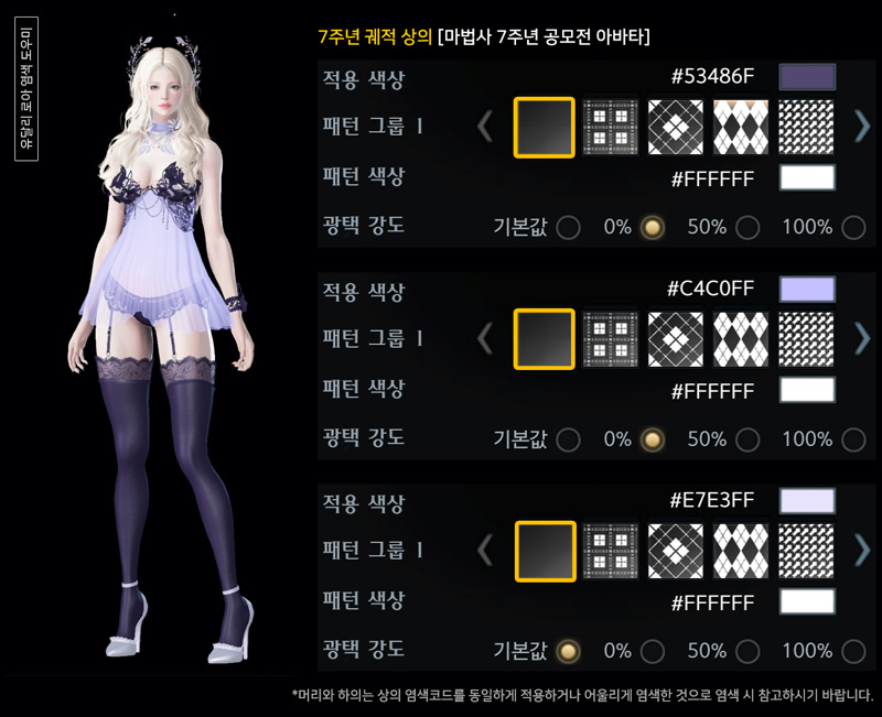 7주년 실린 궤적 아바타 염색코드 3탄