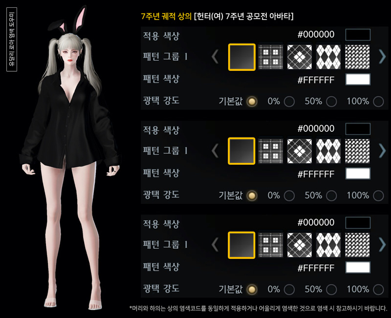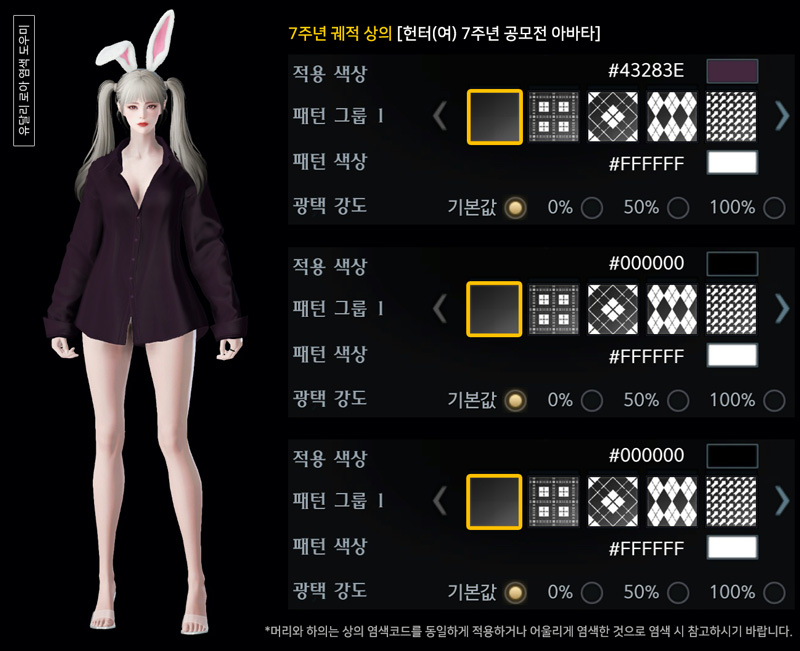오늘은 헌터(여) 건슬링어 7주년 궤적 아바타 염색코드를 준비했습니다.