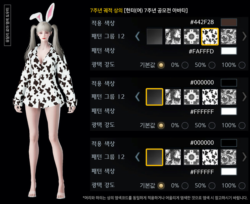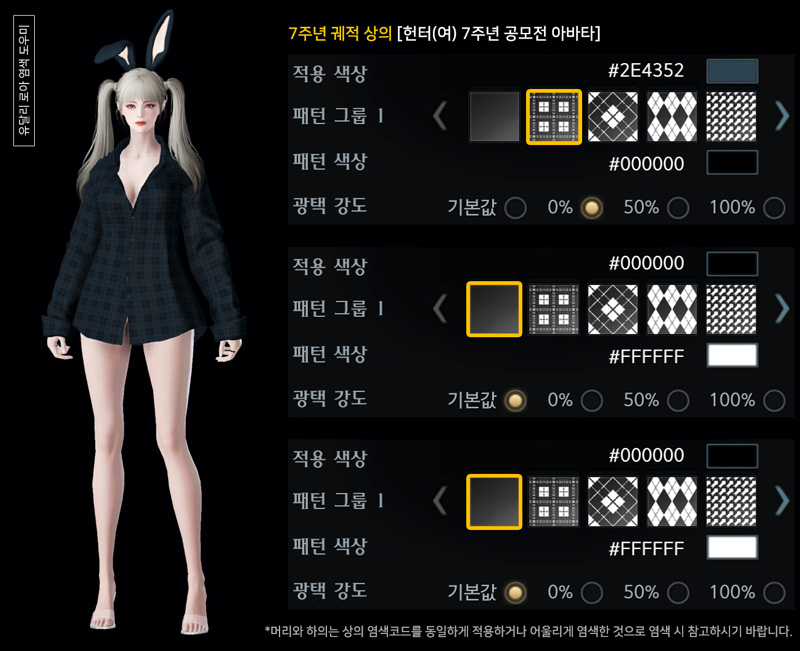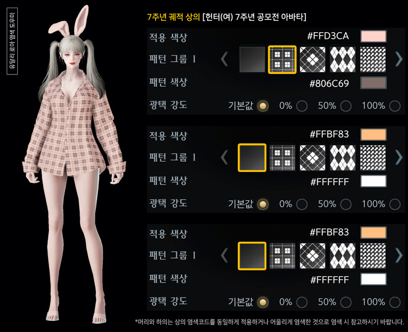 오늘은 헌터(여) 건슬링어 7주년 궤적 아바타 염색코드 2탄을 준비했습니다.