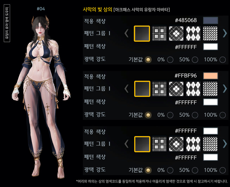 [사막의 빛] 아바타 상의 염색코드 2탄을 가져왔습니다.