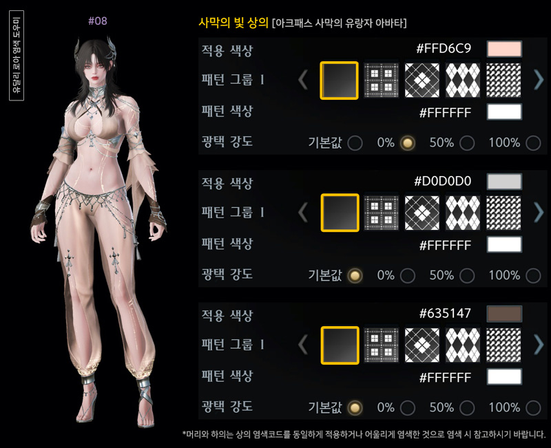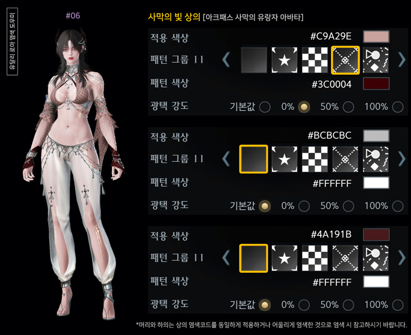 아크패스 사막의 빛 아바타 염색코드 3탄