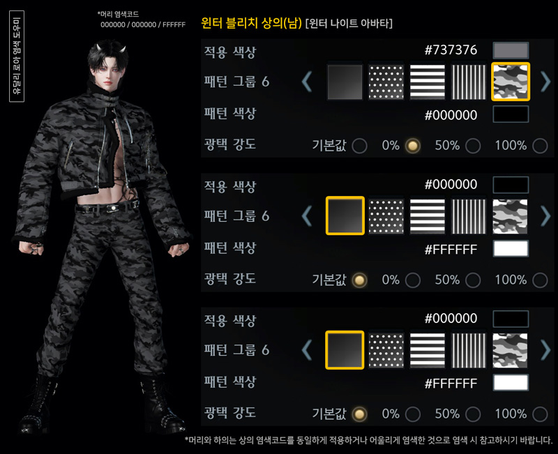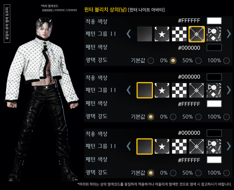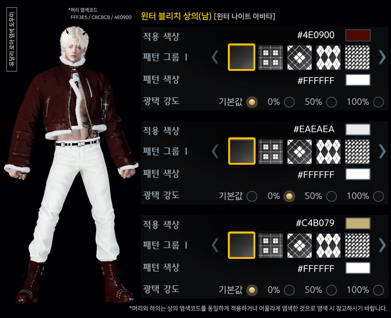 윈터 블리치(남) 아바타 염색코드 1탄