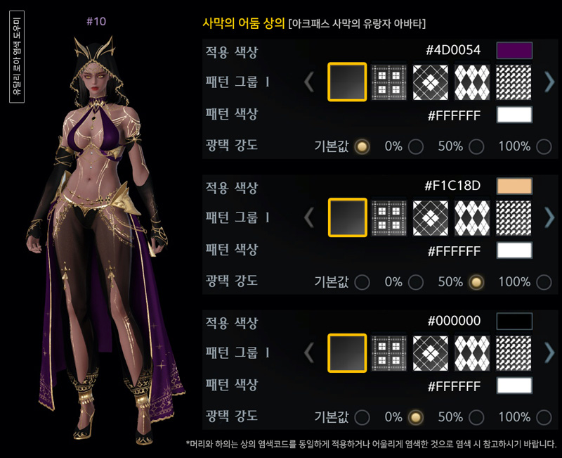 아크패스 사막의 어둠 아바타 염색코드 4탄