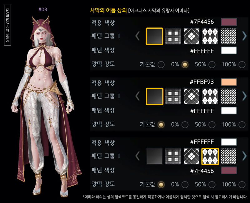 [사막의 어둠] 아바타 상의 염색코드 4탄입니다.