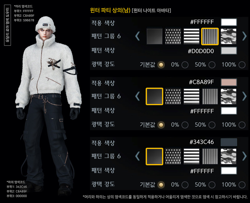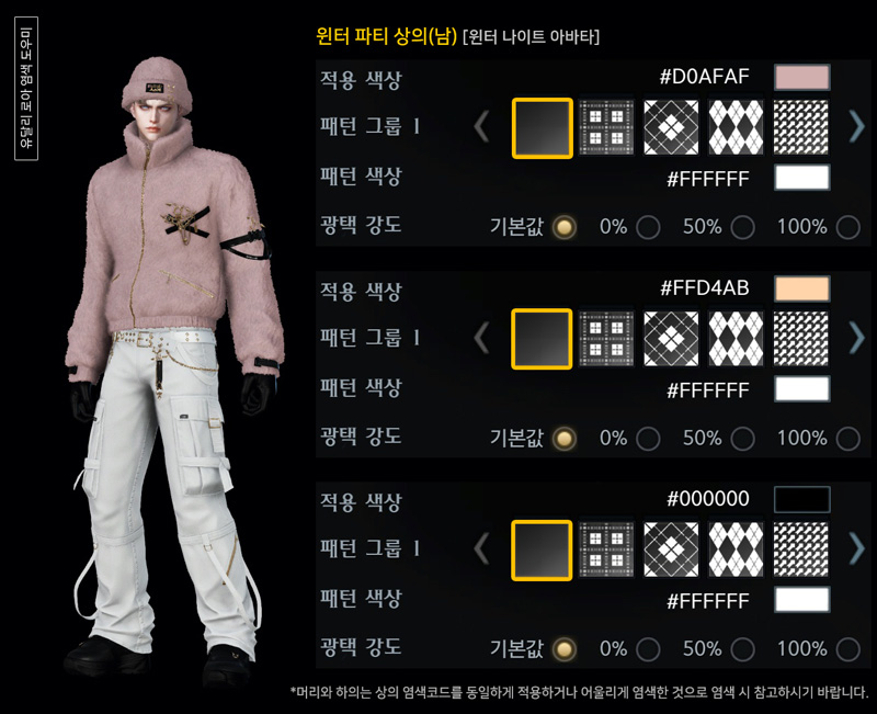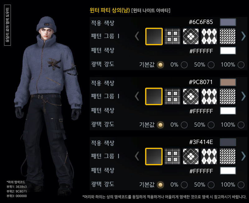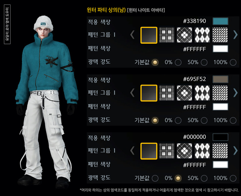 오늘은 윈터 파티(남) 아바타 염색코드 2탄입니다.