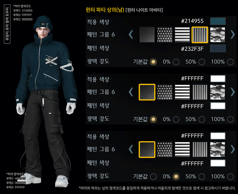 윈터 파티(남) 아바타 염색코드 2탄